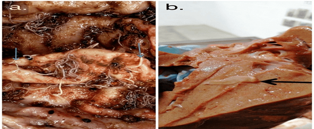 Fig 1: Postmortem of a ruminant showing stomach worms and liver flukes causing anemia