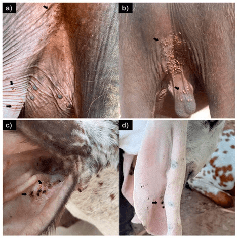 Fig 3: Tick infestation on the insides of the hindquarters of young buffaloes, heifer& on the ear of goats